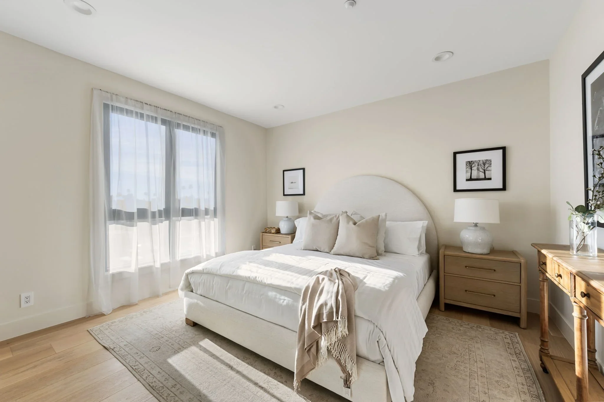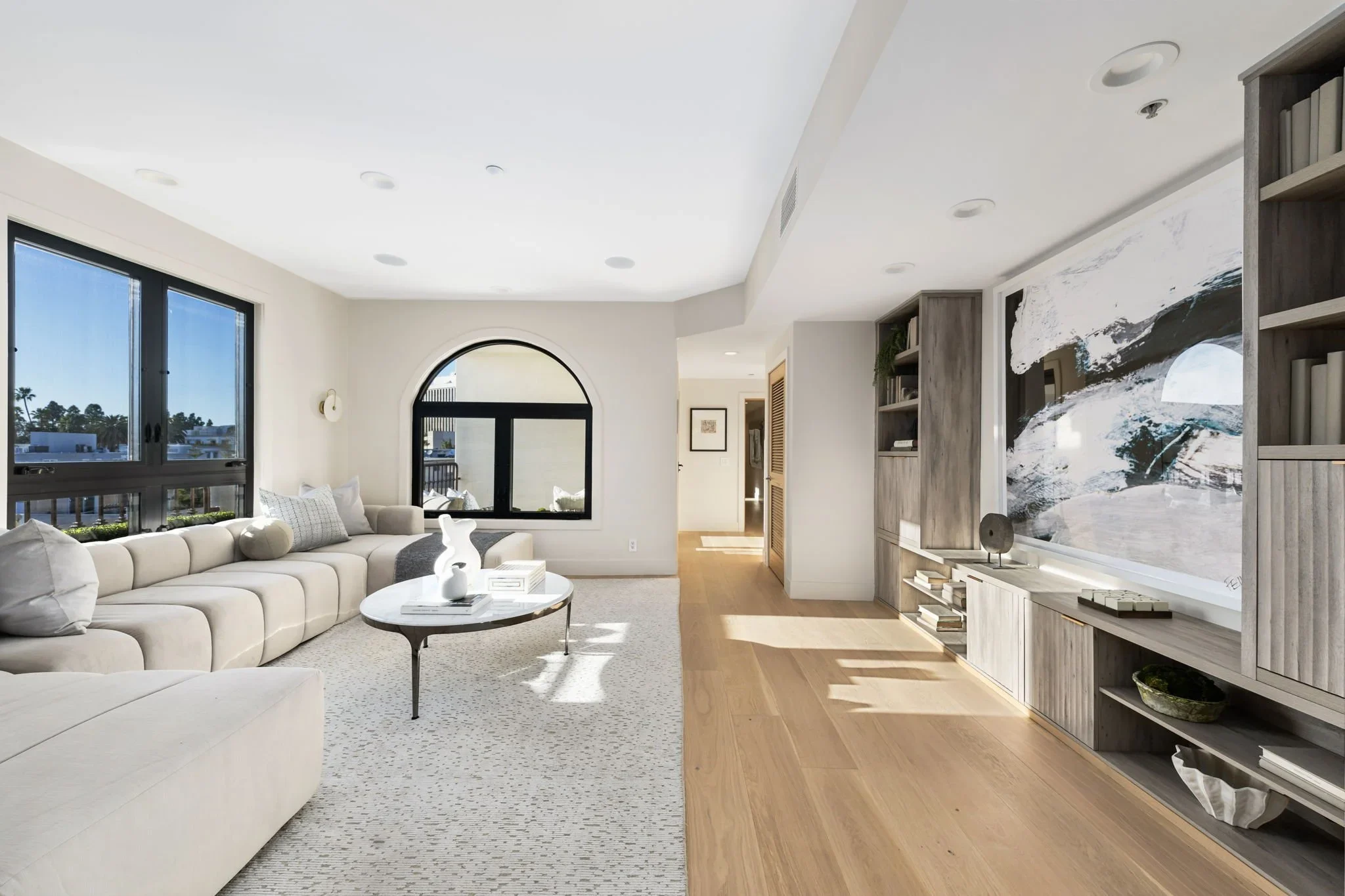 This prime Brentwood penthouse residence is the ultimate in luxury condominium living. Halston House is a bespoke collection of eight condominium residences right in the heart of Brentwood. All of the residences comprise three bedrooms, a family room and 2.5 bathrooms. Elegantly appointed living spaces include gracious living rooms with wide-plank oak wood flooring, fireplaces, large windows and French doors that allow natural light to pour in. The family rooms offer built-in cabinetry, creating an ideal setting for a media room or office. Gourmet kitchens feature Italian Dolomite countertops with full-height backsplash, custom oak cabinetry, stainless steel appliances, glass-front refrigerators and wine refrigerators. The serene primary bedrooms are complemented by spa-like bathrooms with hand laid herringbone limestone, dual sinks, a separate soaking tub, a walk-in shower, and expansive custom-designed walk-in closets. Additional features include built-in speakers, dedicated power for EV chargers, private package delivery lockers in the lobby and additional large private storage in a locked storage room. Halston House was thoughtfully designed with elegance and privacy as a guiding principle.
